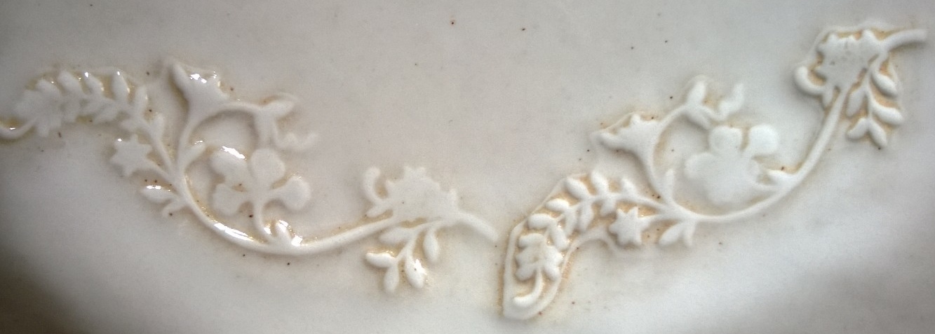 Glaseringen har alltid en annan färg i vått tillstånd i ämbaret än den har på det färdiga föremålet. Rött förvandlas till blått i bränningen, grått blir grönt om man har tur, men det kan också bli brunt om man glaserar för tunt eller bränner i fel temperatur..och så vidare. Men det finns ett ganska säkert kort: vitt blir vitt. Därför valde jag vitt till fatet.