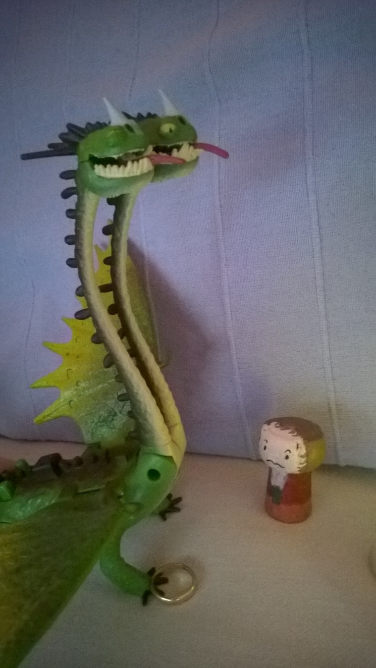 Hobbiten Bilbo ser fundersam ut. Har han tappat ringen?