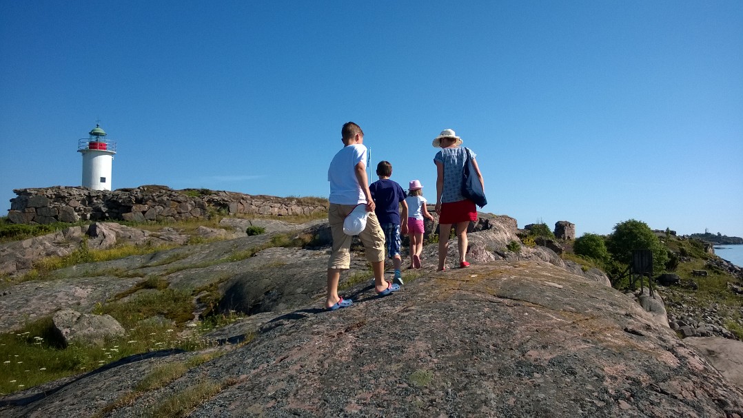 På utflykt till Gustavsvärn, Hangö. De söker talkoarbetare till fyren för sommaren, undrar hur det är att bo och leva där ute i ingenstans…inte ens ett träd.