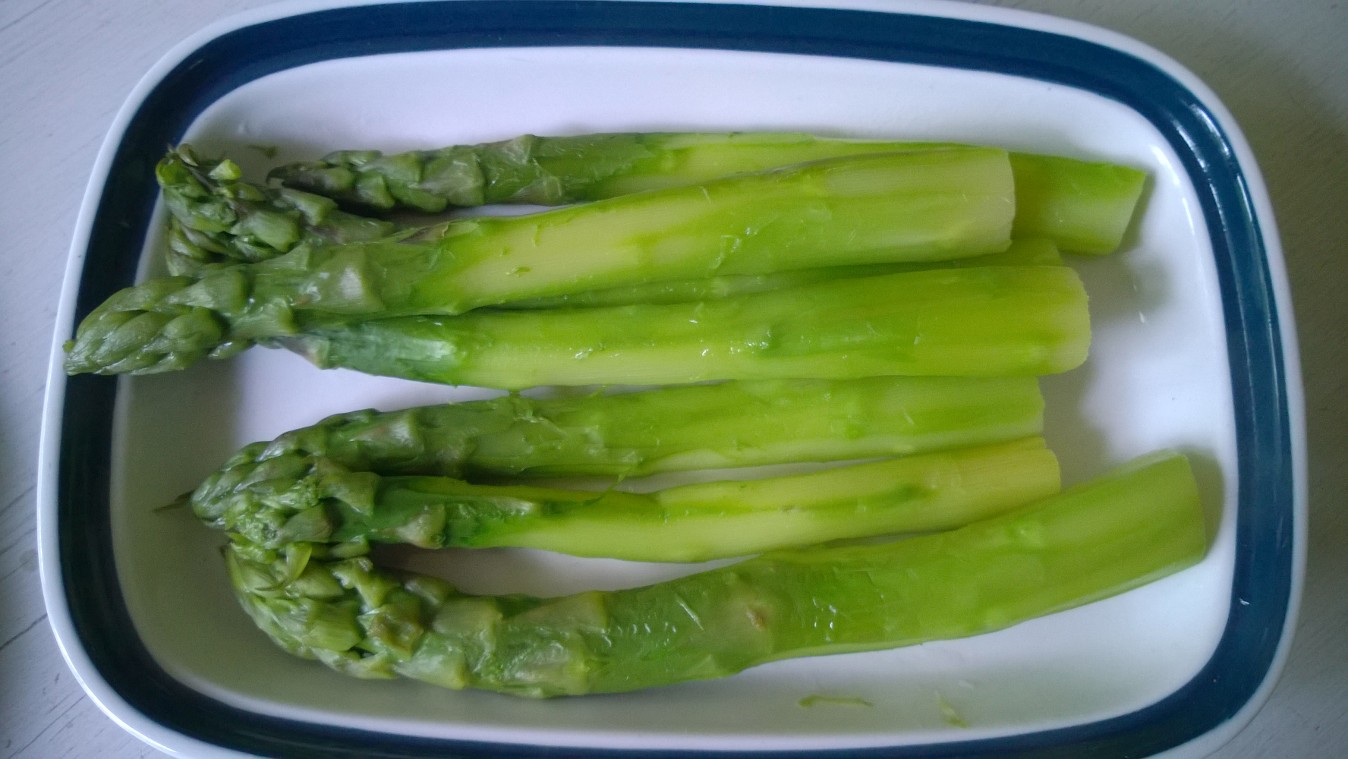 Nykokt sparris är gott! Vi lade sparrisen ovanpå portionerna istället för att blanda i den.