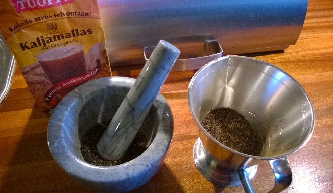 - 3 dl malt (i Finland t.ex. ”Tuoppi”, som stöts/krossas lätt)