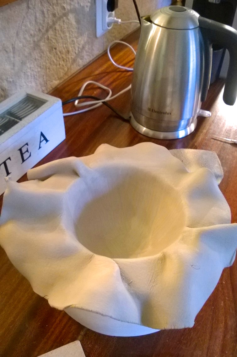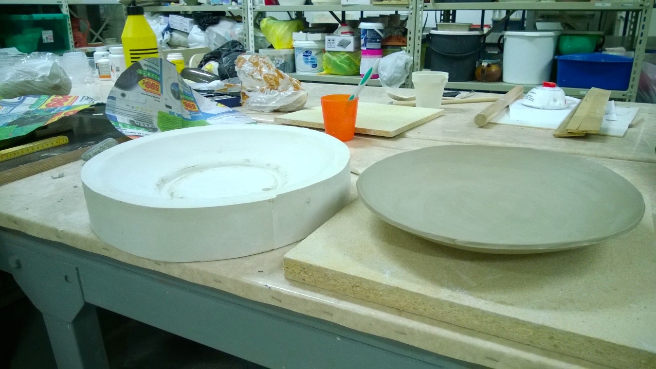 Min färdiga gipsform och första blivande fatet jag just lyft ur formen….Det kändes spännande.