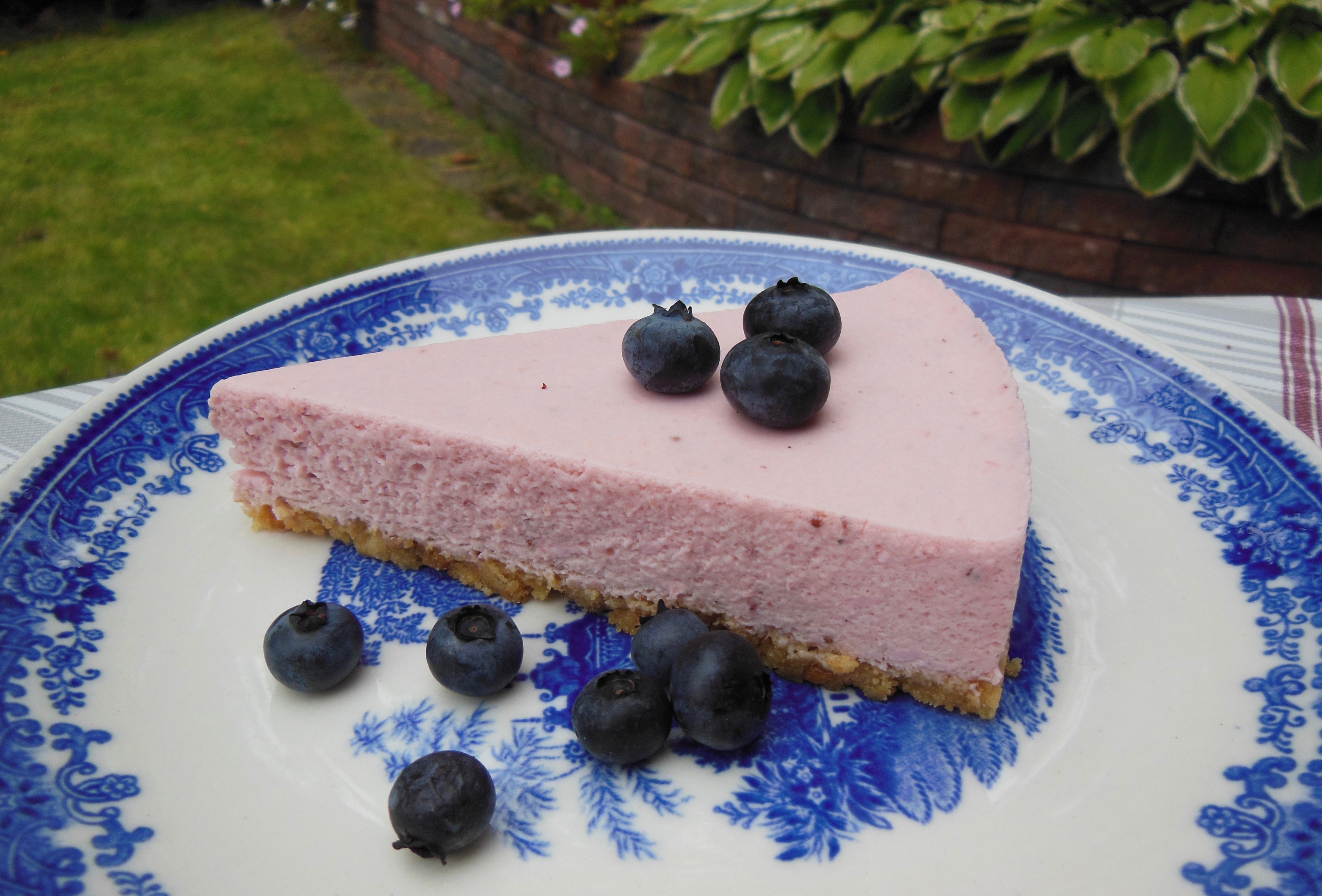Halloncheesecake med blåbär som dekoration