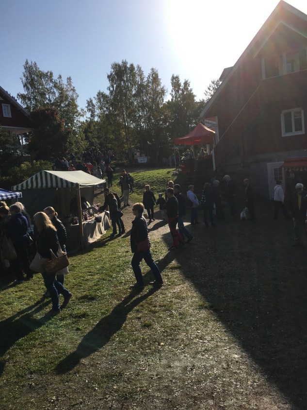 Nästsista veckoslutet i september var det matmarknad på Mangs gård i Ingå, Nyland. Det var åttonde gången, men första gången för oss. Vi hörde efteråt att det hade blivit publikrekord. Det kryllade av människor när vi kom fram och stämningen var god.