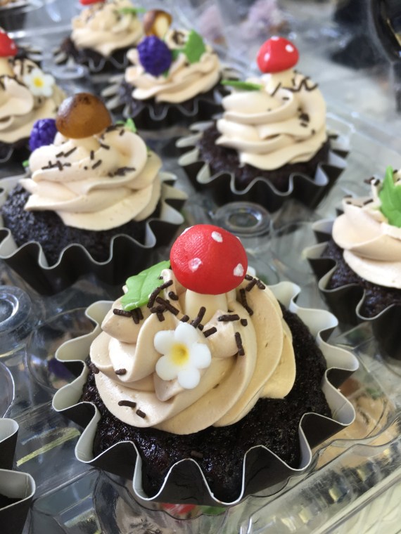 Stommen bestod av saftig chokladkaka och toppingen hade olika smak, från apelsin till mint och mocka. Försäljarna plockade med jämna mellanrum fram nya smakprov, för de hade strykande åtgång.