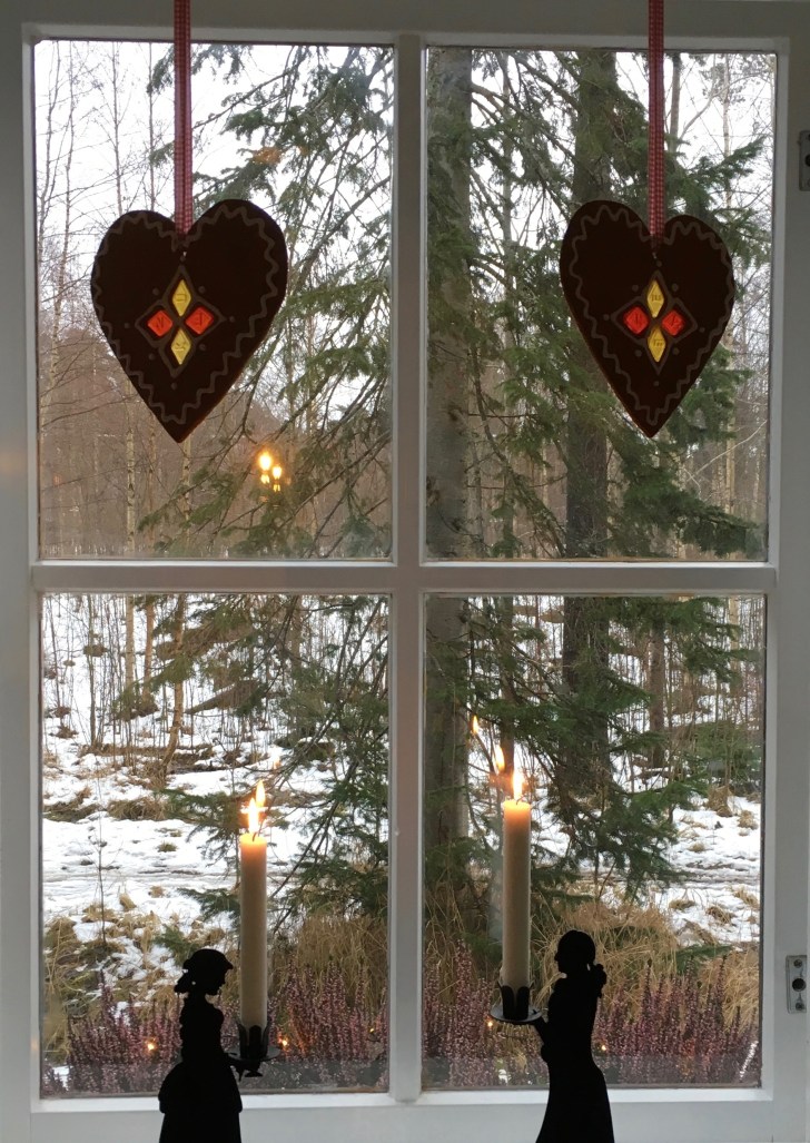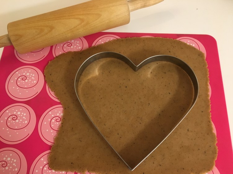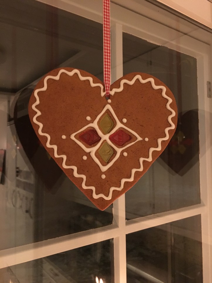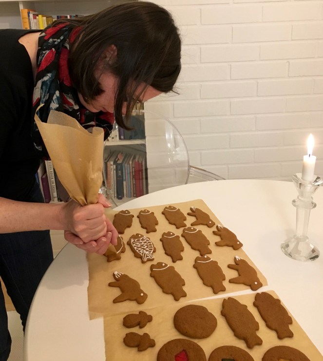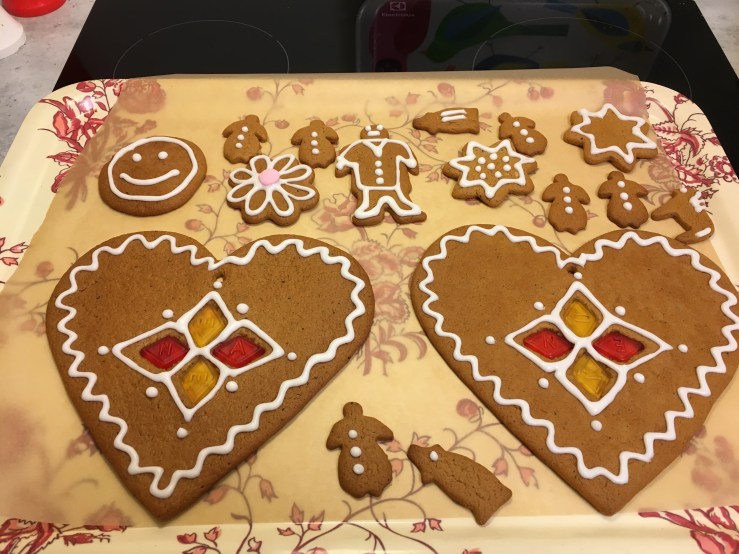 Övade först att spritsa på andra pepparkakor innan jag gav mig på hjärtorna.