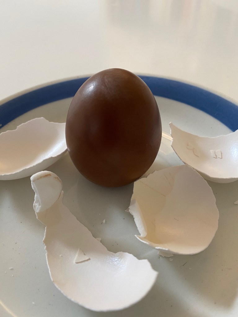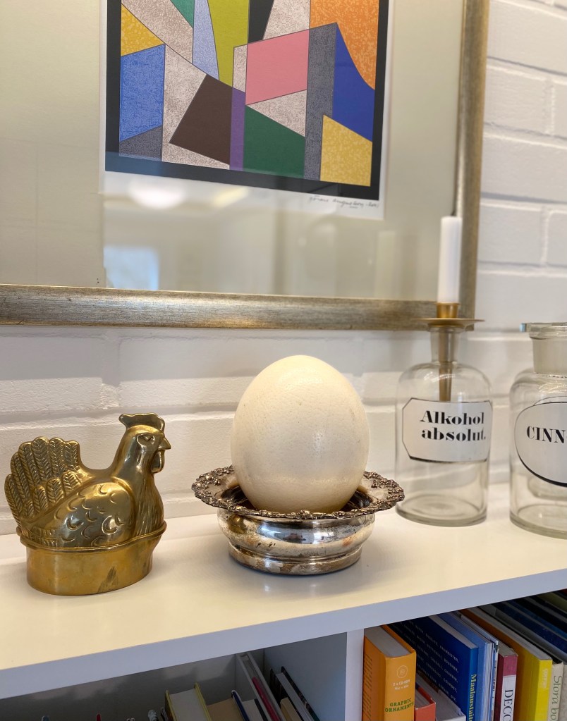 Liksom mässingshönan. Också den hittad på nån loppis… Den innehåller äggkoppar.