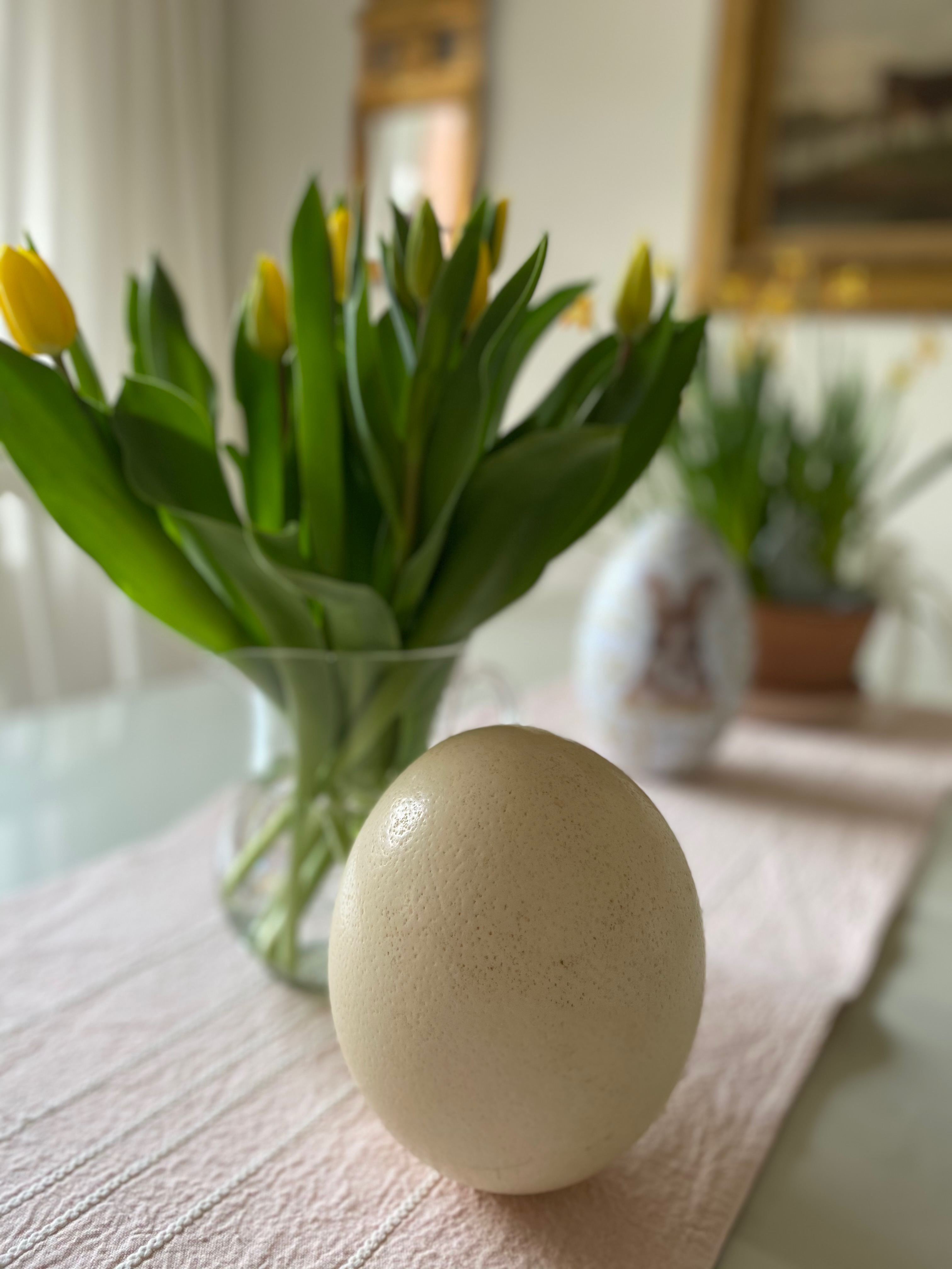 Och gula rosor. I soffbordet har jag också ägg, året om.