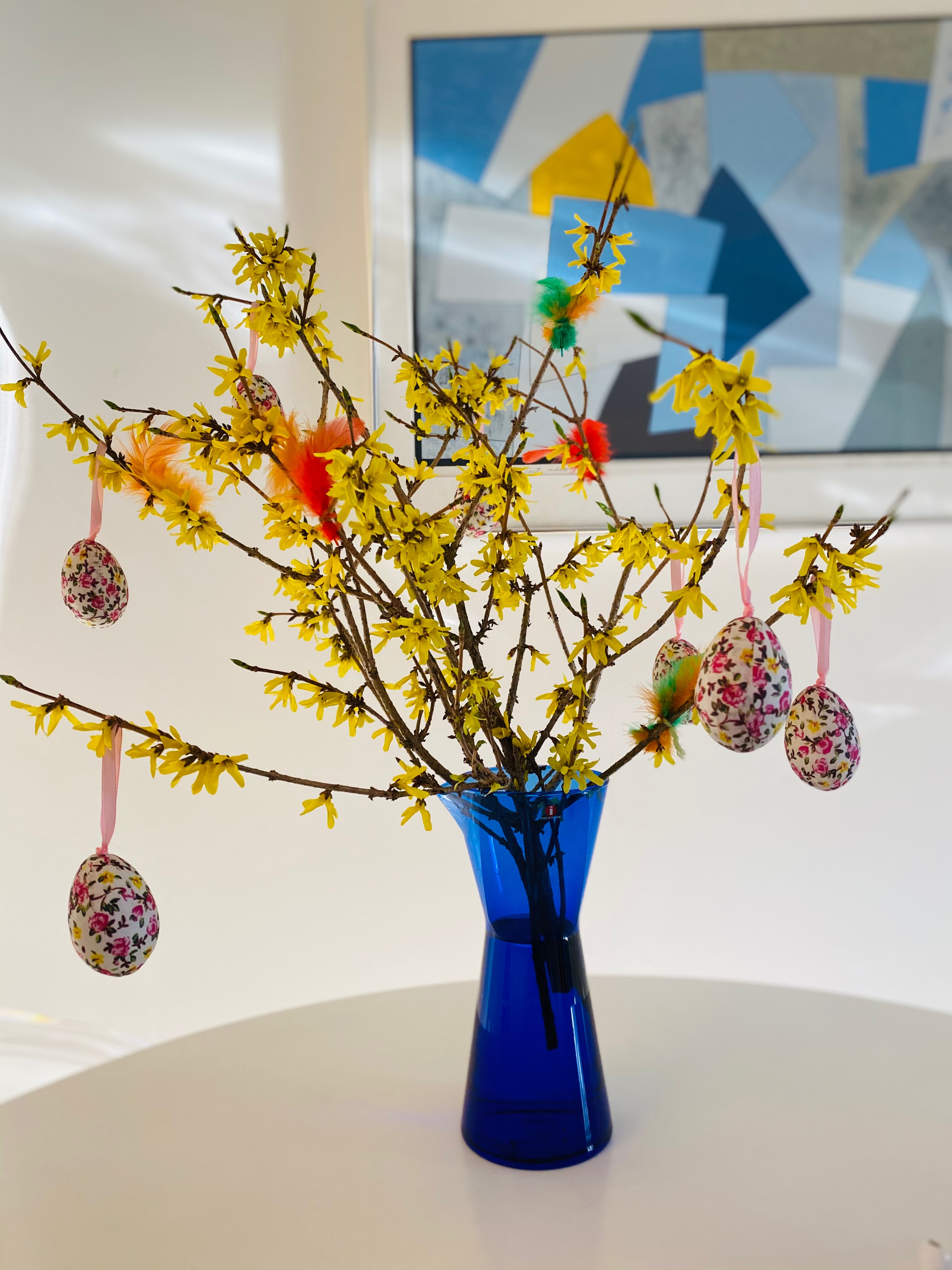 Forsythia har blivit min nya påskblomsfavorit. Jättefin att hänga äggdekorationer i.